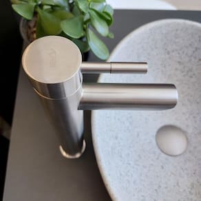 Torneira De Banheiro Monocomando Bica Alta Redonda Prata Escovada Rtl 19 Torneira Misturador Monocomando Prata Escovada. Transforme seu banheiro com luxo e sofisticação. Esta torneira monocomando com bica alta prata escovada oferece água quente e fria, design moderno e alta durabilidade. Ideal para alta pressão, é perfeita para quem busca beleza e eficiência. Bica alta Água quente e fria Linda Torneira Redonda Prata Escovada, super moderna. Torneira Utilizado para sistema de alta pressão de água, com uma pressão máxima de 600kpa. Produzida em aço inox de alta qualidade, antioxidante e anticorrosivo. Seu sistema interno é feito com um cartucho cerâmico que pode durar mais de 600.000 vezes de uso Superior as vendidas no mercado. de 3 anos contra defeito de fabricação. Especificações: Marca: reno Modelo: rtl 19 Material: aço Inox 304 Cor: prata Escovada Sistema: monocomando Formato: redondo : 3 anos contra defeitos de fabricação Instalação: Furação da bancada: 35mm de diâmetro. Kit de instalação incluso com: duas mangueiras para água quente e fria, rosca de fixação com porca para aperto e borrachas de vedação. Pressão: 4 mca metros por coluna d'água a 40 mca. Dúvidas a Banho&Casa estará à disposição para atendê-los de segunda a sexta das 8:30 - 17:30 hrs.