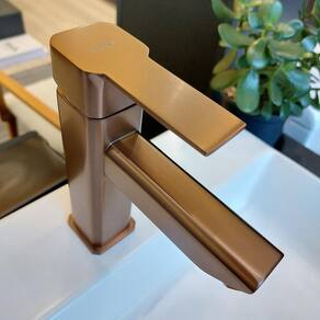 Torneira Banheiro Monocomando Bica Baixa Quadrada Rose Gold