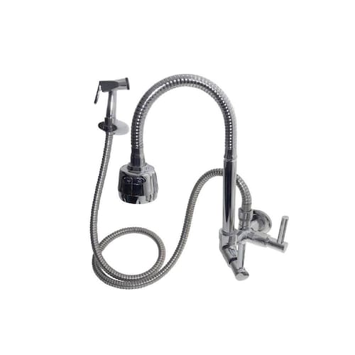 Torneira Bica Móvel Gourmet para Cozinha 1/4 de volta em metal cromado, Tubo flexível ajustável oferecendo maior área de atuação, Arejador com dupla função: jato contínuo ou chuveirinho em ABS cromado de alta resistência, Recomendação mínima de 4 m.c.a. metros coluna d'água para um bom funcionamento, não recomendado para instalação em ponto de caixa d'água, Mecanismo cerâmico ¼ de volta que proporciona economia de água. Tem alta durabilidade e pode ser substituído se necessário, Instalação em parede, Prática na hora de limpar a pia toda proporcionando higienização total da área de trabalho ou para encher as panelas, Modelo C34 alavanca, Bitola de 1/2 com bucha adaptável de 3/4, Ducha flexível com 1,20 m de comprimento, Gatilho em metal, Produto multiuso indicado para cozinhas, bares, restaurantes, churrasqueira, espaço gourmet, etc