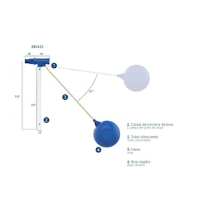 Material: Plásticos de engenharia e elastômeros Referência: 191401 Rosca Fêmea: 1/2" Rosca Macho: 3/4" Haste em liga de cobre