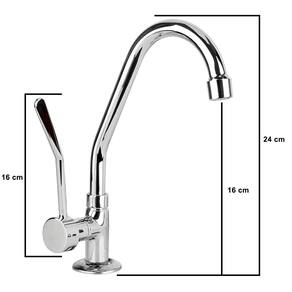 Torneira clínica bica alta móvel, com alavanca reforçada e longa, com mecanismo 1/4 de volta de metal e cerâmica, indicado para clínicas, hospitais, consultórios e banheiros PNE. Todos os nossos materiais são testados antes de despachar para nosso cliente devido termos a e dar segurança para o profissional que for utilizar. As alavancas são fabricadas em metal cobre e metal maciço, para dar mais resistência e durabilidade ao cliente, não enferruja e não tem parafuso de venda, para não acumular bactéria. Marca: Loren Metais