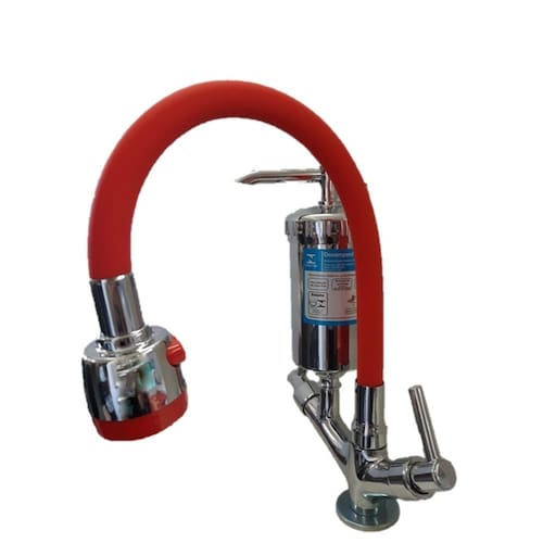 Torneira com filtro gourmet de bancada, bica VERMELHA flexível, dois jatos Cor: vermelha/cromada Arejador: 2 jatos de água tipo chuveiro e concentrado Material: Torneira de metal, filtro ABS cromado, bica de siicone Torneira robusta torneiras junior ou slim são mais leve e de menores dimensões Produto com selo do Inmetro Fixação: bancada ou mesa Rosca/dimensão: 1/2" Filtro com alta resistência recomenda a troca da vela a cada 6 meses Mecanismo: 1/4 de volta Acabamento/volante: alavanca