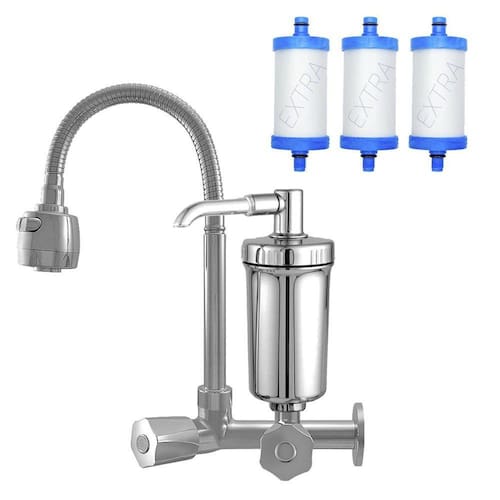 Produto: torneira com filtro cozinha parede gourmet modelo corpo de abs c50; Ligação: 1/2; Refil incluso: 04; Utilização: cozinha; Fixação: parede; Material corpo da torneira: abs(não enferruja); Material alavanca de acionamento: abs(não enferruja); Material do copo: abs(não enferruja); Material do corpo da bica: metal(não enferruja); Material da bica: abs(não enferruja); Acabado: cromado; Acionamento: 1/4 de volta; Pressão mínima recomendada: 04 mca; Pressão máxima suportada: 40 mca; Temperatura suportada: 1c até 80c; Garantia: 3 meses; Fabricante: tik de casa;