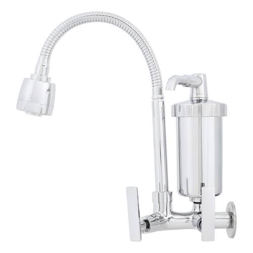 A Torneira com Filtro Cromada Equation e a escolha ideal para quem busca funcionalidade e design sofisticado em um unico produto. Com dimensoes de 36x30x10 cm, esta torneira de bica alta oferece amplitude e praticidade, permitindo o uso confortavel em pias de diferentes tamanhos. O acabamento cromado nao so proporciona um visual moderno e elegante, como tambem garante durabilidade e resistencia a corrosao, mantendo o produto sempre com aparencia de novo. Integrando filtro de agua, esta torneira vai alem da funcao tradicional, proporcionando agua pura e segura diretamente da sua pia. O sistema de filtragem e eficiente, removendo impurezas e melhorando o sabor da agua, o que e essencial para a saude e bem-estar da sua familia. Alem disso, a presenca do filtro integrado elimina a necessidade de dispositivos adicionais, otimizando o espaco e mantendo a estetica da cozinha limpa e organizada. Recomendada para cozinhas e areas gourmet, a Torneira com Filtro Cromada Equation e perfeita para quem valoriza praticidade sem abrir mao do estilo. A bica alta facilita o manuseio de panelas e utensilios de grande porte, tornando as tarefas diarias mais eficientes. A instalacao e simples e rapida, adaptando-se facilmente a diferentes tipos de encanamento. Combinando estetica e funcionalidade, esta torneira e um investimento inteligente para qualquer ambiente moderno. Resumo: Torneira com filtro integrado; Dimensoes: 36x30x10 cm; Acabamento cromado resistente a corrosao; Bica alta para maior praticidade; Sistema de filtragem eficiente; Ideal para cozinhas e areas gourmet; Instalacao facil e rapida.