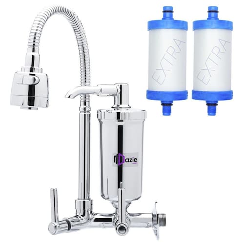 Descrição do Produto: Torneira Com Filtro Gourmet Parede Pro Saude + 2 Refil Extra A Torneira Com Filtro Gourmet Parede Pro Saude é perfeita para a sua cozinha. Com um design moderno e funcional, ela possui um filtro de alta qualidade que proporciona água pura e saudável para o consumo diário. Acompanha 2 refis extras, além de 1 refil já instalado, garantindo água filtrada por muito mais tempo. Com a qualidade reconhecida da marca Dazie Metais, você terá um produto durável e de alta performance. A fabricante Dazie utiliza componentes de alta qualidade em sua montagem, garantindo a máxima eficiência e durabilidade do produto. Antes de ser enviado, cada torneira passa por testes rigorosos e vazamentos, garantindo a sua total satisfação. O refil blindado pró saúde possui classificação C de retenção, sendo um dos melhores no mercado. Além disso, possui certificação legal do Inmetro, garantindo a qualidade e segurança do produto. A torneira Dazie possui partes em ABS com matéria-prima da Alemanha, o que garante uma qualidade superior em relação aos produtos nacionais. O cromo do metal tem uma durabilidade de mais de 8 horas em banho, proporcionando um brilho intenso e duradouro, sem perder a cor. A vida útil da torneira é de até 20 anos. Principais Características: - Refil incluso: 03 refis blindados pró saúde classe C - 01 já instalado; - Utilização: cozinha; - Fixação: modelo de parede; - Material corpo da torneira: metal inoxidável não enferruja ; - Material alavanca de acionamento: ABS alemão não enferruja ; - Material do copo: ABS alemão não enferruja ; - Material do flexível: metal não enferruja ; - Acabamento: cromado plus brilhante; - Acionamento: 1/4 de volta; - Ligação: 1/2 + adaptador 3/4; - Pressão mínima recomendada: 04 mca; - Pressão máxima suportada: 30 mca; - Temperatura suportada: 1°C até 80°C; - : 12 meses; - Fabricante: Dazie Metais. Aproveite as vantagens da Torneira Com Filtro Gourmet Parede Pro Saude e tenha água filtrada e de qualidade na sua cozinha. Compre agora mesmo e desfrute de todos os benefícios desse produto incrível. Caso precise, temos um passo-a-passo em vídeo para realizar a instalação. Marca: Dazie Metais Ean: 7896380961979