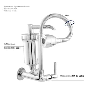 A Torneira é fabricada 100% no Brasil Fabricação própria Metais e CIA Temos todas as peças de reposição a venda Fixação: Parede ou Bancada favor escolher o modelo na ato da compra Certifique-se de que a foto do produto é o modelo correto para sua instalação. O que é ABS? ABS é um polímero termoplástico que possui excelente resistência, durabilidade e não enferruja. Produto: Torneira Com Filtro Ligação: Serve para ser instalada 1/2 Material: ABS Não Enferruja Acionamento: 1/4 de Volta Pressão Mínima Recomendada: 04 MCA Pressão Máxima Suportada: 40 MCA Temperatura Suportada: 0°C até 90°C Material Tubo: Inox Filtro e Chuveirinho Base ABS Filtro Universal, tecnologia Pró Saúde, garante uma filtragem ainda mais eficiente. Certificado pelo INMETRO. Dúvidas? Estamos à disposição para ajudá-lo(a).