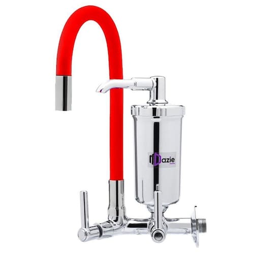 Produto: Torneira Com Filtro Cozinha Parede Gourmet Emborrachada Preta Modelo Corpo de ABS; Ligação: 1/2, acompanha adaptador 3/4; Refil Incluso: 01 Refil Instalado; Fixação: Parede; Material Corpo da Torneira: ABS Não Enferruja ; Material Alavanca de Acionamento: ABS Não Enferruja ; Material do Filtro: ABS Não Enferruja ; Material do Flexível: Metal revestido com Silicone Vermelho Não Enferruja ; Material da Bica: Metal Não Enferruja ; Acabado: Cromado; Acionamento: 1/4 de Volta; Pressão Mínima Recomendada: 04 MCA; Pressão Máxima Suportada: 40 MCA; Temperatura Suportada: 1C até 80C; Garantia: 3 Meses; Fabricante: Dazie Metais; Marca: Dazie Metais