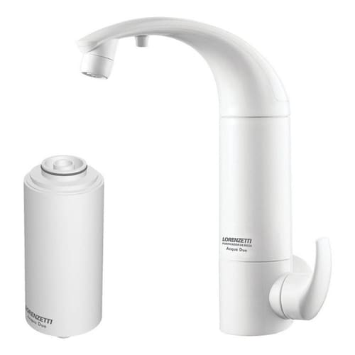 Purificador de Água com Torneira Acqua Due Lorenzetti Parede Com Refil ExtraO purificador Acqua Due foi desenvolvido para quem busca facilidade e tecnologia na cozinha. Um produto dois em um que te auxilia na lavagem dos utensílios e também te garante água tratada pronta para beber.E este modelo ainda foi premiado como o melhor design do ano na categoria construção, 33º prêmio design museu da casa brasileira. - Bica Móvel: Duas saídas de água na mesma bica, uma purificada e outra comum- Água pura: Retira o excesso de cloro, gostos e odores desagradáveis- 03 etapas de purificação: Camada Pré filtrante, Carvão ativado, Camada filtrante- Seletor prático: Único registro para água purificada ou normal- Acompanha Refil extra para troca uso exclusivo Acqua DueDescrição Técnica:Local de instalação: De ParedeEficiência de redução de cloro livre: SimControle nível microbiológico: SimExtraíveis: SimVida útil recomendada (Refil): 1.500 Litros ou 06 MesesVazão nominal: 48 L/hPressão mínima e máxima: 20 kpa - 400 kpaTemperatura mínima e máxima: 3°C a 40°CRequisitos elétricos: Não elétrico*Dimensões: 9,6 cm x 30 cm x 26,4 cm (Comp. x Larg. x Alt.)A vida útil recomendada é de 1.500 litros, porém este valor pode variar dependendo da utilização e da quantidade de água recebida em sua residência.Conteúdo: 01 Purificador Acqua Due com 01 Refil, e 01 Refil extra.Produto novo e original Lorenzetti, acompanha nota fiscal.