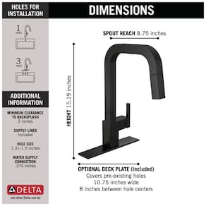 A Torneira Junction é uma opção moderna para sua cozinha, com uma estrutura quadrada industrial e ângulos arqueados. O Delta MagnaTite Docking é um recurso que utiliza um ímã poderoso para fixar o pulverizador pull down com precisão no lugar e mantê lo acoplado quando não estiver em uso. As torneiras para pia de cozinha com orifícios de spray TouchClean permitem que você limpe facilmente o acúmulo de cálcio e cal com o toque de um dedo. O design de arco baixo gira 360 graus com uma mangueira retrátil de 50 cm para maior comodidade durante as tarefas diárias da cozinha, enquanto o pulverizador de função dupla alterna facilmente entre spray e jato. As torneiras de cozinha Delta com orifícios de spray TouchClean permitem que você limpe o cálcio de forma rápida e fácil e acúmulo de calcário com o toque de um dedo, portanto, não há necessidade de molhar ou usar produtos de limpeza químicos. A válvula de retenção dupla integral no pulverizador e a mangueira de abastecimento flexível trançada em polímero com 96 cm garantem maior durabilidade e confiabilidade. A instalação é fácil e pode ser feita em furo único ou 3 furos, 20 cm de configurações, com tudo o que você precisa reunido em uma caixa, incluindo linhas de fornecimento trançadas e placa de deck opcional para instalação em 3 furos.