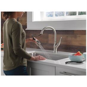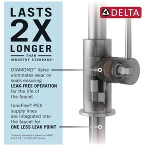 A coleção Ophelia Kitchen apresenta um estilo tradicional com detalhes curvos e tecnologia Delta Touch2O, que permite ligar e desligar a torneira com um simples toque em qualquer lugar da bica ou alça com o pulso ou antebraço. A luz LED Delta TempSense muda de cor para alertar sobre a temperatura da água e a tecnologia Delta MagnaTite Docking usa um ímã poderoso para encaixar o pulverizador pull down no lugar e mantê lo ali quando não estiver em uso. A tecnologia Delta ShieldSpray limpa com precisão semelhante à do laser, ao mesmo tempo que contém sujeira e respingos, enquanto a tecnologia Delta SpotShield ajuda a manter a torneira mais limpa por mais tempo, resistindo a manchas de água e impressões digitais. As torneiras de cozinha Delta com tecnologia DIAMOND Seal dura 2X mais tempo do que o padrão da indústria e as torneiras para pia de cozinha com orifícios de spray TouchClean permitem que você limpe facilmente o acúmulo de cálcio e cal com o toque de um dedo. A instalação é fácil e pode ser feita em configurações de pia de cozinha de furo único ou de 3 furos, com tudo o que você precisa reunido em uma caixa, incluindo placa de deck opcional para instalação de 3 furos e linhas de abastecimento InnoFlex PEX integradas para um ponto de vazamento a menos.