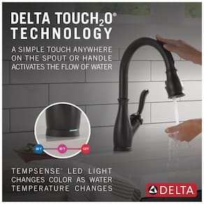 A Leland Kitchen Collection é uma torneira que une o estilo tradicional com a funcionalidade moderna. Com a tecnologia Touchless, as torneiras Delta Touch2O ajudam a manter os germes e sujeiras longe da torneira da cozinha, fornecendo fácil controle da água de 3 maneiras basta colocar a mão perto da torneira, bater na superfície da torneira ou usar a ativação padrão da alça. A luz LED TempSense muda de cor para alertar sobre a temperatura da água e eliminar possíveis surpresas ou desconfortos. O MagnaTite Docking usa um poderoso ímã integrado para puxar o bastão de pulverização da torneira com precisão no lugar e mantê lo lá para que permaneça encaixado quando não estiver em uso. A tecnologia ShieldSpray limpa com precisão semelhante à do laser, ao mesmo tempo que contém sujeira e respingos. Um jato concentrado elimina sujeiras teimosas, enquanto um inovador escudo de água contém respingos e limpa a sujeira, para que você possa gastar menos tempo encharcando, esfregando e trocando de camisa. As torneiras Delta com tecnologia Diamond Seal funcionam como novas para toda a vida com um design patenteado que reduz os pontos de vazamento, é menos complicado de instalar e dura o dobro do padrão da indústria. Você pode escolher entre Touch2O com Touchless ou Touch2O apenas. A ativação Touchfree ajuda a manter sua torneira livre de bagunça, reduzindo a limpeza. Ligue e desligue simplesmente colocando sua mão a 10 cm da superfície da torneira. O corte automático do fluxo de água após quatro minutos ajuda a economizar água. A instalação é DIY, com vídeos de instalação passo a passo no YouTube da Delta Faucets.