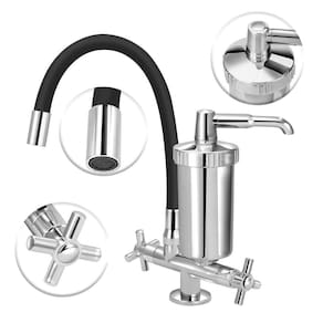 Torneira cozinha flexivel preto c/filtro abs mesa slim 1/4v Torneira cozinha flexivel preto c/filtro abs mesa slim 1/4v Fabricado em plástico super-resistente abs , possui alta resistência a riscos e a corrosões, conservando a beleza do produto por muito mais tempo. Deixe o ambiente bonito e elegante, invista neste torneira e tenha um produto de qualidade e designer fantástico, perfeita para pequenos ambientes, essa peça oferece maior praticidade e charme. Dados técnicos: - instalação: mesa - feito em abs plastico de engenharia com alta resistência e durabilidade . E o tubo flexível revestido em silicone preto - mecanismo 1/4 de volta com pastilha cerâmica. - acompanha 1 refil de filtro embutido no copo. - pressão de água: 02 a 40 m.C.A. - tipo de bica: gourmet, móvel, giratória 360; flexível; - filtro: abs cromado: - tipo do elemento filtrante vela : carvão ativado; - 3 meses de contra defeito de fabricação e mecanismo de vedação. - o refil do filtro é para 1000l de água. aconselhamos em uso domestico a troca a cada 6 meses - a rosca é conexão padrão de 1/2 ou seja, o furo deve ter 2 cm ou 20,5mm. Você vai se surpreender com a qualidade do produto Recomendações de uso, manutenção e limpeza: limpar a torneira apenas com um pano macio e sabão neutro. Não usar produtos abrasivos como: sapólio, palha de aço e produtos químicos. Marca: Não Informado Ean: 0074468275379