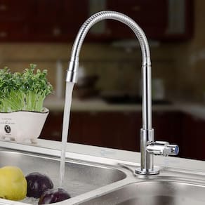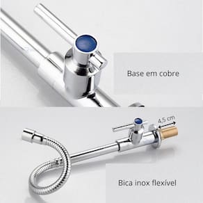 As torneiras gourmet de cozinha mesa contam com bica móvel em Aço Inox gira 360 e flexível podendo ajustá-las aos mais diversos tamanhos de pias. Possui mecanismo 1/4 de volta que permite a rápida abertura e fechamento da torneira e corpo em metal. Conta também com arejador em forma de comei-a, ele permite que o jato fica mais suave e uniforme, evitando respingos. A torneira gourmet cozinha é uma excelente escolha para quem procura custo x benefício. Fabricados em metal cromado, com componentes em Aço Inox e ABS ABS é uma resina termoplástica derivada do petróleo de excelente qualidade com acabamento todo cromado. Ficha técnica: Tipo de bica: giratória e flexível Tipo de mecanismo: 1 /4 de volta Tipo de arejador: jato concentrado Bitola: 1/2 Pressão Mínima: 2 m.C.A. Pressão Máxima: 40 m.C.A. Fixação: Mesa Somente Água Fria Indicado para: cozinha. Marca: Não Informado