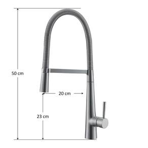 Torneira Cozinha Gourmet Monocomando Aço Escovado Cor: Aço Escovado A Torneira Cozinha Gourmet Monocomando Aço Escovado confere à sua cozinha um toque moderno e elegante. Possui cartucho de cerâmica e monocomando central de alta durabilidade que permite controlar o fluxo e a temperatura da água com um único comando, praticidade, tecnologia e muita elegância. Informações Técnicas: Material: Liga de CobreAcabamento: Aço EscovadoPressão Mínima: 4 McaPressão Máxima: 40 McaTemperatura máxima da água: 90C - temperatura recomendada 65cConexão: Furo na bancada: 35mm O produto também pode ser utilizado somente com água fria, sendo necessária a instalação de adapador tipo T não incluso . Itens inclusos: Torneira, flexíveis e peças para fixação. Recomendação de limpeza: Limpar apenas com pano macio e sabão neutro. Não usar produtos abrasivos como sapólio, palha de aço e produtos químicos.