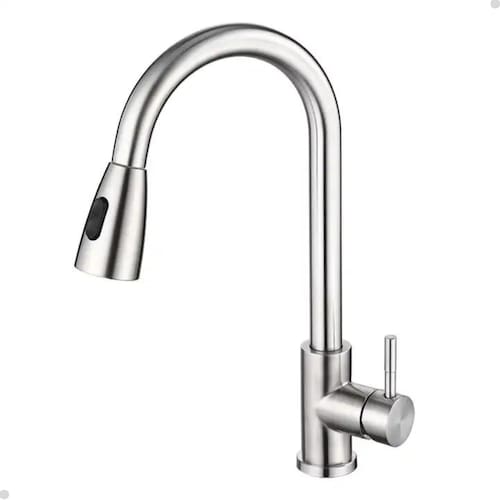 Torneira Gourmet Misturador Monocomando Extensível Aço Escovado Duplo Spray - Água Quente e Fria.