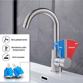 A Torneira Cozinha Gourmet Monocomando Misturador possui bica móvel de 360° e foi projetada no padrão de furo para cubas e bancadas (furo na bancada de 3,5cm/35mm). Seu corpo é feito inteiramente de aço SUS304, aspecto que garante alta resistência aos processos de corrosão e oxidação comuns em ambientes com excesso de umidade e água. Além disso, o material preserva a beleza do seu revestimento fosco por muito tempo. A Torneira Cozinha Gourmet Monocomando Misturador também possui sistema monocomando que garante um acionamento rápido e prático com apenas um toque. Seu acabamento é escovado e super simples de limpar, perfeito para combinar com estilos diferentes de cozinha. A Torneira Cozinha Gourmet Monocomando Misturador possui sistema de pastilha cerâmica que é altamente resistente e garante uma vedação perfeita.