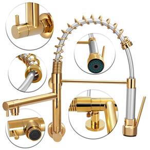 Torneira Cozinha Gourmet Parede Gatilho Spray Dourada/Gold A Torneira Monocomando Gourmet Spray parede é eficiente e prática para o seu dia a dia na sua cozinha. Seguindo a série de torneiras gourmet, a torneira de parede possui uma ducha flexível de longo alcance que pode ficar encaixada no seu suporte ou ser solta e atingir outros lugares da pia.