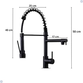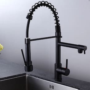 Torneira gourmet de design moderno e robusto, projetada para uso em cozinhas domésticas ou industriais. Essa torneira possui duas saídas de água, uma delas flexível com spray e outra giratória, que podem operar de forma paralela ou separada, permitindo assim a lavagem de alimentos e utensílios de forma mais prática e controlada.