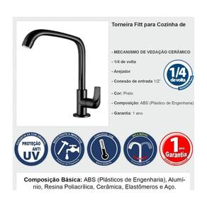 Torneira Cozinha de Mesa Lorenzetti Fitt Abs Preta 1/4 de Volta Marca: Lorenzetti Modelo: 7111082 1167 F61 Material de fabricação: ABS Plástico de Engenharia ; Cor: Preto Proteção: Acabamento com proteção UV e tratamento anticorrosivo Mecanismo: Cerâmico 1/4 de volta Pressão mínima de funcionamento: 1,5 mca Pressão máxima de funcionamento: 40 mca Temperatura máxima de funcionamento: 50ºC Arejador embutido: Economiza água e evita respingos Bitola móvel: Giro de 360º Bitola: 1/2' DN15 Altura total: 30,2 cm Altura queda d'água: 20,3 cm Comprimento: 15,7 cm Largura: 8,1 cm : 12 meses Ean: 7896451874030