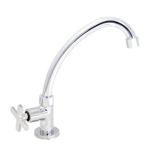 Torneira Cozinha Mesa Bica Móvel Cromada com Arejador Fixo e Volante C29+ brinde Ralinho de Aço