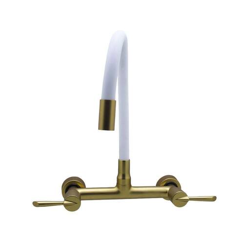 Torneira Pia Misturador Cozinha Parede Flexível Colorido Branco e Dourado (Gold Fosco) Alavanca 1/4 de Volta