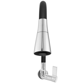 A Torneira De Cozinha Parede Preta Gourmet Cônico Cromado C-65, o cano é Flexível e Emborrachado uma das novidades mais belas e fantásticas em torneiras, com sua Base em Metal possui grande resistência, seu formato trás modernidade, inovação e requinte.