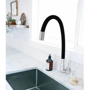 A torneira tubo flexível parede cozinha color preta luxo é ideal para quem procura uma torneira contemporânea e prática. Com sua alavanca com acionamento de 1/4 de volta e tubo flexível com alcance de 360 graus, oferece excelente alcance para o direcionamento do jato de água. O arejador assegura um jato uniforme e espumante.