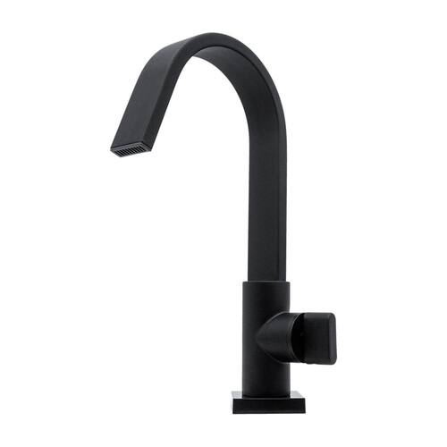 Torneira pia cozinha mesa e bancada alta preto fosco luxo 1/4 de volta A torneira alta preto fosco, é ideal para agregar beleza na decoração da sua cozinha e perfeita para compor o conforto do seu lar. Feita em apenas um comando com funcionamento perfeito em baixa e alta pressão. Une com perfeição de curvas, dando origem a um design exclusivo e minimalista com acabamento na cor cromado, que oferece requinte e modernidade aos ambientes. Dados técnicos: - fabricante: 5 anos - posição de instalação: mesa - furação : 35mm - pressão mín.: 2 m.C.A - pressão máx.: 40 m.C.A - vazão mín.: 5 l/m - vazão máx.: 20 l/m - temperatura máx.: 80 c - composição: corpo - metal / volante - metal / canopla - metal - ciclo de abertura: 2 Marca: Shop Hidraulica