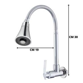 A Torneira Flexível Metal possui bica Flexivel de Mesa com 360 de rotação e foi projetada no padrão para a parede.