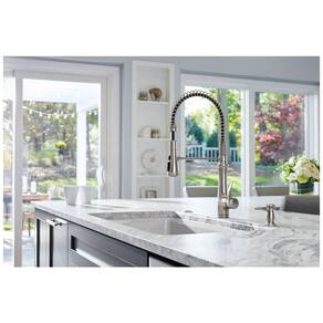 Esta torneira suspensa Bellera possui uma silhueta elegante e traz estilo e desempenho de nível profissional para cozinhas domésticas. O bico de arco alto com um design de bobina de mola de inspiração industrial gira 360 graus para um campo de alcance completo. Além disso, possui um pulverizador de três funções com controle de toque que é puxado para baixo na pia para uma limpeza poderosa com o spray Sweep, ou para fora da pia para encher potes e jarras rapidamente com a função Boost. A torneira é semiprofissional e possui uma mangueira fácil de limpar que possui uma bobina removível, inclui rotação da alça de 90 graus para evitar contato com varredura backsplash. A torneira em spray cria uma lâmina de água larga e forte para limpeza superior, vazão máxima de 1,5 gpm 5,7 lpm a 60 psi 4,14 bar. Com controle de toque que permite alternar entre fluxo, varredura de pulverização e aumento, proporcionando aumento de 3 taxas de fluxo, a torneira de cabeça de pulverização de três funções tem memória de temperatura que permite que a torneira permaneça na temperatura definida durante o uso anterior. A bica alta da Bellera Kohler oferece melhor espaço para encher potes e limpar, enquanto a mangueira trançada leve e silenciosa da tecnologia ProMotion e a junta esférica giratória tornam nossa torneira extraível mais confortável e fácil de usar e está equipada com nosso sistema de encaixe seguro DockNetik que trava o pulverizador em lugar, também projetado com face de pulverização MasterClean que é fácil de limpar e resiste ao acúmulo de minerais. As válvulas de disco de cerâmica excedem os padrões da indústria de longevidade e desempenho que são feitos para durar a vida toda em sua cozinha, feitas com nosso premium acabamento duradouro resistente à corrosão e manchas. As torneiras Kohler atendem aos critérios da EPA e são registradas na Comissão de Energia da Califórnia CEC9. As linhas de fornecimento flexíveis estão incluídas para tornar a instalação mais rápida e fácil, projetada para instalação em furo único. As torneiras projetadas Kohler trazem uma elegância elevada para sua cozinha ou lavanderia, nossos vários estilos são feitos para caber em diferentes pias de cozinha, RV ou qualquer reforma de cozinha.