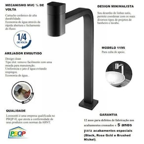 Torneira para cuba apoio loren code black 1195 b55 lorenzettiCaracterísticas; Marca: lorenzettiLinha: loren codeModelo: 1195 b55Tipo de peça: torneiraMaterial: liga de cobre(bronze e latão), eslastômeros, e plástico de engenharia.Tipo de montagem: de mesaTipo de torneira: duplo comandoLugar de colocação: lavatórioDescrição: torneira lavatório de mesa para cuba de apoio 1195 b55Mecanismo de vedação cerâmico 1/4 de volta: rapidez no acionamento e fechamento que proporciona economia de água