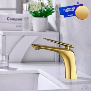 - Marca: iCasa Shop - Modelo: Acqua - Referência : IC-7401BG - Aplicação: Bancada / Mesa - Material: Liga Metálica de Cobre e Zinco - Revestimento Dourado escovado: Tripla camada + camada selante - Válvula interna: Cartucho cerâmico de altíssima durabilidade - Altura Total: 16 centímetros - Temperatura de trabalho: 5ºC - 70ºC - Pressão ideal de funcionamento: 5mca - 30 mca - Furação de instalação: 35mm (milímetros) - Itens Inclusos: 2 mangueiras flexíveis para ligação de água quente e fria - Instalação: Manual de instalação incluso no produto - Peso total (produto + embalagem): 1,7 Kg - Garantia: 12 meses contra defeitos de fabricação