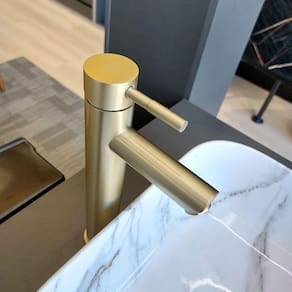 Torneira Monocomando Bica Alta Dourada Fosca Reno RTA 706 Transforme seu banheiro ou lavabo com a sofisticação da Torneira Monocomando Bica Alta Dourada Reno RTA 706. Seu design moderno e acabamento fosco garantem elegância e durabilidade. Água Quente e Fria: Sistema monocomando para controle fácil da temperatura. Durabilidade Garantida: Cartucho cerâmico com mais de 600.000 ciclos de uso. Instalação Simplificada: Acompanha kit completo para fácil instalação. Especificações Técnicas: Marca: Reno Modelo: RTA 706 Design: Redonda Cor: Dourada Fosca Tipo: Monocomando Bica Alta Material: Aço Inox 304 Sistema: Água quente e fria : 3 anos contra defeitos de fabricação Instalação: Furação da bancada: 35mm de diâmetro. Kit de instalação incluso: Duas mangueiras para água quente e fria. Rosca de fixação com porca para aperto e borrachas de vedação. Pressão: 4 mca metros por coluna d'água a 40 mca. Dúvidas A Banho&Casa está à disposição para atendê-los de segunda a sexta, das 8:30 às 17:30. Marca: Não Informado