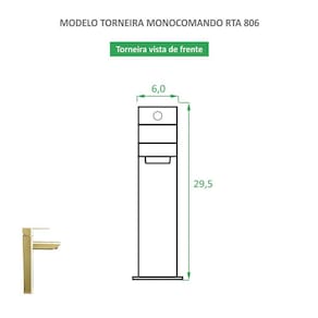 Torneira Monocomando Bica Alta Dourada Fosca Reno RTA 806 Transforme seu banheiro ou lavabo com a sofisticação da Torneira Monocomando Bica Alta Dourada Reno RTA 806. Seu design moderno e acabamento fosco garantem elegância e durabilidade. Água Quente e Fria: Sistema monocomando para controle fácil da temperatura. Durabilidade Garantida: Cartucho cerâmico com mais de 600.000 ciclos de uso. Instalação Simplificada: Acompanha kit completo para fácil instalação. Especificações Técnicas: Marca: Reno Modelo: RTA 806 Design: Quadrada Cor: Dourada Fosca Tipo: Monocomando Bica Alta Material: Aço inox 304 Sistema: Água quente e fria Pressão: 4 a 40 mca máx. 600 kPa Furação da Bancada: 35mm de diâmetro Cartucho: Cerâmico 600.000 ciclos de uso : 3 anos contra defeitos de fabricação Instalação: Furação da bancada: 35mm de diâmetro. Kit de instalação incluso com: duas mangueiras para água quente e fria, rosca de fixação com porca para aperto e borrachas de vedação. Pressão: 4 mca metros por coluna d'água a 40 mca. Marca: Não Informado