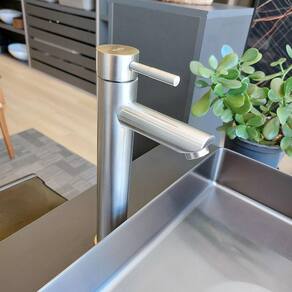 Torneira Monocomando Bica Alta Escovada Reno RTA 707 Transforme seu banheiro ou lavabo com a sofisticação da Torneira Monocomando Bica Alta Escovada Reno RTA 707. Seu design moderno e acabamento escovado garantem elegância e durabilidade. Água Quente e Fria: Sistema monocomando para controle fácil da temperatura. Durabilidade Garantida: Cartucho cerâmico com mais de 600.000 ciclos de uso. Instalação Simplificada: Acompanha kit completo para fácil instalação. Especificações Técnicas: Marca: Reno Modelo: RTA 707 Design: Redonda Cor: Escovada Tipo: Monocomando Bica Alta Material: Aço Inox 304 Sistema: Água quente e fria : 3 anos contra defeitos de fabricação Instalação: Furação da bancada: 35mm de diâmetro. Kit de instalação incluso: Duas mangueiras para água quente e fria. Rosca de fixação com porca para aperto e borrachas de vedação. Pressão: 4 mca metros por coluna d'água a 40 mca. Dúvidas A Banho&Casa está à disposição para atendê-los de segunda a sexta, das 8:30 às 17:30. Marca: Não Informado Ean: 7891528410142