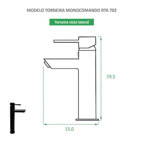 Torneira De Banheiro Monocomando Bica Alta Preta Rta 702