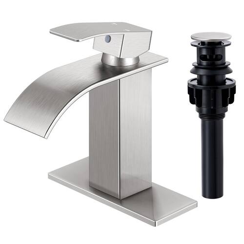 torneira de banheiro com alça singe cachoeira níquel escovado moderna torneira de banheiro com ralo pop up - ?Torneira de cascata de manípulo único? - O design de bico de cascata ultra amplo torna grande fluxo de água. A torneira de banheiro de alça única é fácil de controlar e pode ajudar os usuários a se ajustarem facilmente ao fluxo de água e à temperatura apropriados. - ?Material resistente e durável?- A torneira de banheiro de alça única é feita de aço inoxidável SUS 304 para resistência superior à ferrugem. - ?Dreno pop-up?- O design pop-up só precisa ser pressionado levemente e o ralo pop-up borrifa água rapidamente. 10% mais rápido do que os plugues de drenagem tradicionais. E o núcleo quicando resistente pode garantir que você pressione mais de 50.000 vezes. - ?Acessórios incluídos?- Dreno pop-up, placa de deck de 15 cm incluída para instalação de pia central de 1 ou 3 furos, 2 mangueiras flexíveis (quente e fria) e outras peças para uma instalação fácil. - ?Garantia e serviço?- A Qomolangma oferece consultoria técnica vitalícia e vem com uma garantia de 1 ano. Se você tiver algum problema com nossas torneiras de banheiro para pia, não hesite em entrar em contato conosco, nós lhe daremos a melhor solução o mais rápido possível.