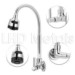 Torneira De Cozinha De Parede Tubo Gourmet Luxo 1/4v. Cor: Prateado - Torneira De Cozinha De Parede Tubo Gourmet LUXO 1/4v. - O design desta torneira de parede deixa a cozinha muito sofisticada e elegante, tornando-se um objeto de decoração indispensável. Perfeita para varandas gourmet. É uma peça multiuso e prática, com atributos que agregam nas tarefas do dia a dia. Possui rapidez no acionamento e fechamento, proporcionando economia de água. Sua cozinha merece essa qualidade. - Torneira fabricada em metal latão cromado de alta resistência e durabilidade, proporcionado um custo beneficio sem igual. - Sistema de Acionamento de volta com pastilhas cerâmicas. - Fácil instalação e manutenção. - Arejador dupla função jato tipo chuveiro ou continuo. Observação: Nossa produto é mais robusto do que os dos concorrentes, por ter o tubo Gourmet e a base da torneira de 3/4 assim sendo mais pesado e com superioridade na qualidade. - Recomendações de Uso, Manutenção e Limpeza: Limpar a torneira apenas com um pano macio e sabão neutro. Não usar produtos abrasivos como: sapólio, palha de aço e produtos químicos. Marca: Lhd Metais