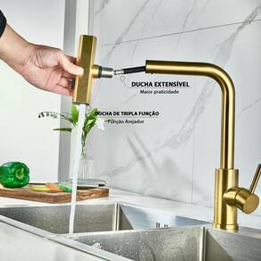 A Torneira Gourmet Extensível Spin foi projetada para sua cozinha, combinando seu design moderno à praticidade e versatilidade que você precisa! O misturador monocomando cerâmico controla a vazão e a mistura de água quente. Além da praticidade de sua mangueira extensível e sua bica giratória, a ducha conta com três opções de jato permitindo a limpeza e a higienização de utensílios e de sua bancada de forma fácil e eficiente. A rotação da bica permite o posicionamento do manípulo de abertura de acordo com o lado de sua preferência. A Fabricação precisa e minuciosa com materiais nobres e seu acabamento Dourado escovado, conferem ao produto durabilidade e acabamento impecável. Praticidade, luxo e sofisticação de um produto Premium em sua cozinha. A Torneira Spin é o detalhe que faltava em seu projeto!