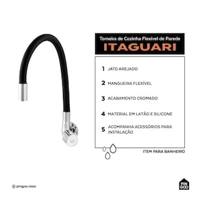 Conteúdo da embalagem: 1 Torneira de cozinha flexivel parede Itaguari