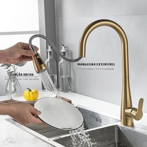 ESPECIFICAÇÕES TÉCNICAS - Marca: iCasa Shop - Modelo: Move - Dourada Escovada - Referência : IC-627BG - Misturador: Monocomando "Quente e frio" - Aplicação: Bancada / Mesa - Material: Inox 304 - Mangueira Extensível: Trama de Nylon - Acabamento: Dourado Escovado em tripla camada com selador (Evita marcas d’água e manchas) - Válvula interna: Cartucho cerâmico de altíssima durabilidade - Altura Total: 48 centímetros - Temperatura de trabalho: 5ºC - 70ºC - Pressão ideal de funcionamento: 5mca - 30 mca - Furação de instalação: 35mm (milímetros) - Itens Inclusos: 2 mangueiras flexíveis para ligação da torneira a água quente e fria, conector, elementos de fixação e extensão. - Instalação: Manual de instalação incluso no produto - Peso total (produto + embalagem): 2,2 Kg - Garantia: 12 meses contra defeitos de fabricação