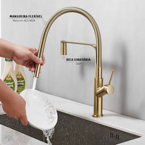 A versatilidade de sua mangueira flexível aliada a bica giratória, permite a limpeza e a higienização de utensílios e de sua bancada de forma fácil e eficiente.
