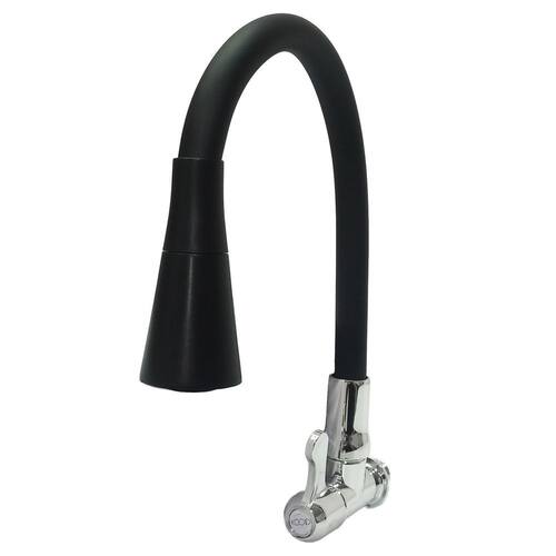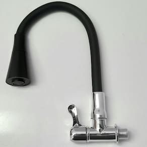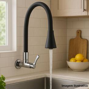 Corpo metálico com bico flexível em silicone Cor preta Altura total: 40 cm Bico com giro completo de 360 Tipos de jato: Dois - contínuo ou chuveirinho ajustável diretamente no bico tipo cone Fixação direta na parede Marca: Lar E Quintal