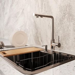 Este produto é capaz de manejar tanto água quente quanto fria, adaptando-se às suas necessidades culinárias ou de limpeza. O acionamento é feito por meio de um mecanismo de 1/4 de volta, que é conhecido por sua facilidade e precisão no controle do fluxo de água. O formato quadrado do acionamento adiciona um toque moderno e sofisticado ao design.