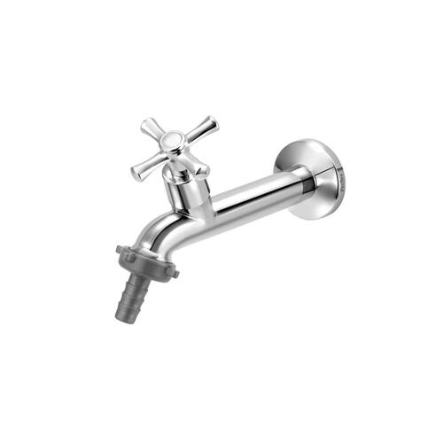 Torneira metálica longa de parede resistente, indicada para tanque ou jardim. Composição básica: ligas de cobre, plásticos de engenharia e elastômeros. Acabamento superficial biníquel cromado que proporciona alta resistência à corrosão. Bitola de 1/2' DN15 . Acionamento de volta com pastilha cerâmica. Furo na parede: 25mm a 30mm. Produto de Fácil Instalação. Acompanha: Torneira, adaptador de 3/4 DN20 e bico união, que além de direcionar o jato de água, evitando respingos desnecessários, serve para acoplar mangueiras de jardim. Cor: Cromado Observações: Foto Ilustrativa. Não incluso instalação.