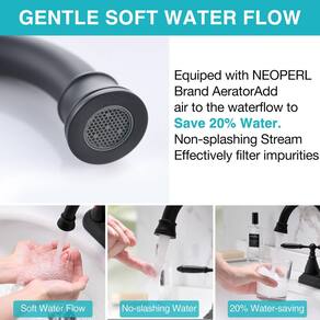 Tipo: Torneira de pia de banheiro preta fosca vintage Acabamento: preto fosco Material do corpo principal: aço inoxidável SUS 304 Material do bico: aço inoxidável SUS 304 Material do cabo: aço inoxidável SUS 304 Válvula: Válvula de cerâmica Característica de água: mistura quente e fria Tipo de instalação: furo duplo (com placa de deck para bacia de 2 ou 3 furos de 4") Altura total: 21 cm - ?Material sem grafite e saudável?A torneira preta da pia do banheiro é feita de aço inoxidável SUS 304 sem grafite, garantindo a você uma água mais limpa e saudável. Permite que você fique longe da água de metal pesado com esta torneira de banheiro. A torneira de banheiro preta fosca tem 7 camadas de processo de tratamento de superfície para protegê-la da ferrugem, corrosão e torná-la antiimpressões digitais. - ?Garantia certificada da torneira?Esta torneira da pia do banheiro está equipada com o cartucho de cerâmica certificado cUPC, que passou 800.000 vezes no teste ON/OFF para garantir o desempenho sem vazamentos e as mangueiras de água certificadas cUPC NSF que atendem aos padrões de alta qualidade dos EUA e do Canadá. Não precisa se preocupar com todos os problemas de vazamento. - ?Bico giratório de 360°?O design de rotação de 360° das torneiras de banheiro com duas alças aumenta a área de limpeza para uso flexível. Torneira de banheiro com 2 alças para controle de fluxo e temperatura sem esforço. Esta torneira de pia de banheiro pode ser usada em muitos lugares, pode ser usada como torneira de banheiro para casa, torneira de banheiro de trailer, torneira de lavanderia, torneira de lavatório e assim por diante. - ?Brilho de superfície duradouro?A torneira de banheiro preta fosca passou no teste de 100 gramas, que pode refletir o efeito de adesão da tinta da superfície. Não é fácil cair da tinta após um longo tempo de uso e maximiza a beleza da torneira da pia do seu banheiro. - ?Instalação de 2 ou 3 furos?Esta torneira de banheiro de 10 cm é projetada para caber em lavatórios de 10 cm de 2 ou 3 furos e é fácil de instalar sozinho, não há necessidade de empregar um encanador! O manual de instalação está incluído na caixa e você também pode entrar em contato conosco para obter ajuda a qualquer momento.