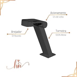 Especificações técnicas : Produto: torneira de pia para banheiro luxo preta de volta Utilização: lavatório / banheiro Fixação: bancada / cuba / pia Diâmetro do furo : mínimo de 20mm Bitola saída: 1/2 polegada Material: 100% metal Cor: preta Acionamento: 1/4 de volta Arejador: sim Bica móvel: não Garantia: 2 anos