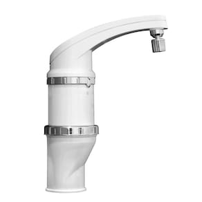 Bica alta e móvel com giro de 180: O movimento giratório possibilita o alcance da água num jato uniforme e por todo interior da cuba