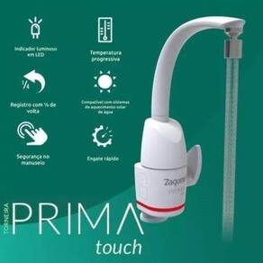 Tecnologia Touch, Instalação em bancada ou parede. A torneira Prima touch foi pensada para ser sinônimo de conforto e funcionalidade desde sua instalação. Além disso, possui bica giratória e acionamento simplifica com registro com 1/4'' de volta. A primeira torneira eletrônica touch do mercado possui: Arejador que não respinga; Indicador de temperatura luminoso em LED; 2 em 1: Possibilidade de instalação em parede ou bancada e Ajuste de temperatura linear e progressivo.