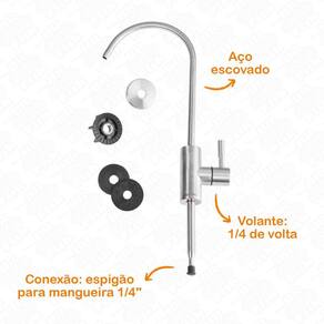 Com essa torneira, você terá a praticidade de ter um filtro ou purificador de água embaixo da pia, sem ocupar espaço na bancada. Além disso, o aço escovado confere um toque de modernidade ao ambiente, combinando com diversos estilos de decoração.
